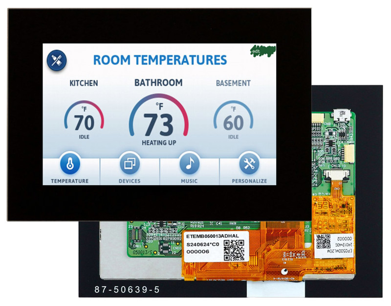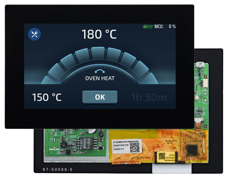 Deze ‘all-in-one’ HMI-oplossing van EDT combineert een energiezuinige STM32 ARM microcontroller met een capacitieve touch display en een selectie van veelgebruikte industriële interfaces in een robuust geassembleerde samenstelling. Voor GUIs maakt displaylijn gebruik van TouchGFX.